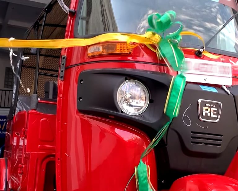 Kendaraan roda tiga bermesin belakang Bajaj pertama di Indonesia, buatan pabrik untuk transportasi yang penuh gaya.