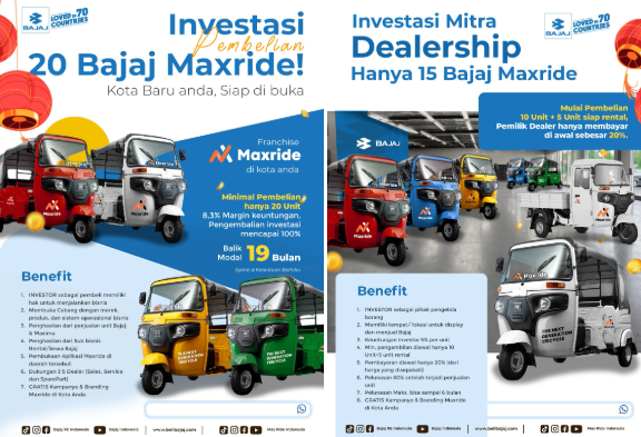 Franchise Bajaj memberikan peluang besar untuk mereka yang ingin membangun bisnis transportasi dengan skala lebih besar dan stabil.
